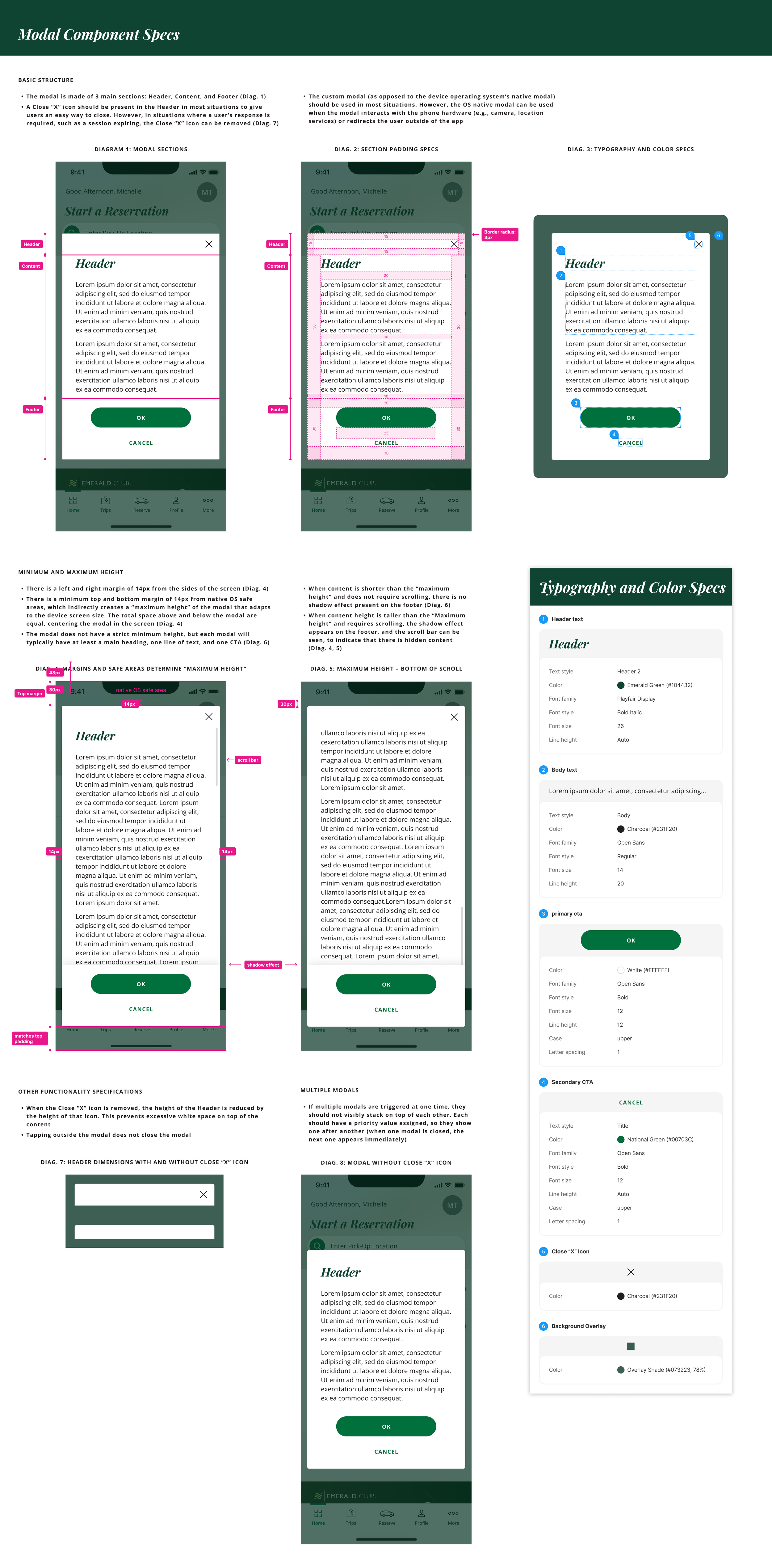 As the lead product designer, I redesigned the functionality of the global modal component to address several past bugs and to improve the component’s flexibility. I then wrote detailed design specs for cross-functional team reference. I also created Figma components for the brand’s Figma library.