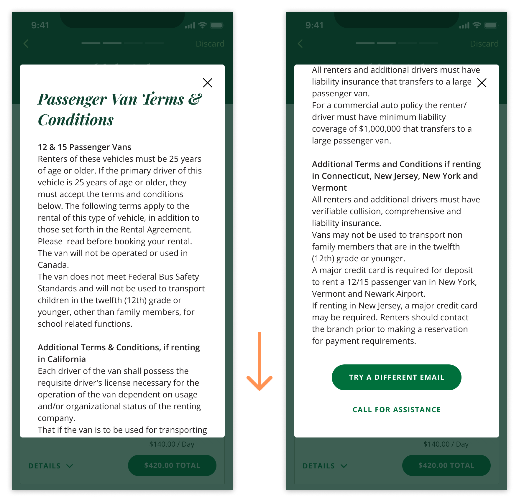 Sometimes, the height of the content within the modal is taller than can fit on the screen. This content gets obscured below the bottom of the modal. Because there are no strong indicators in the current component of this content, the user could miss that there is more content that they have to scroll to, causing frustration and task abandonment.